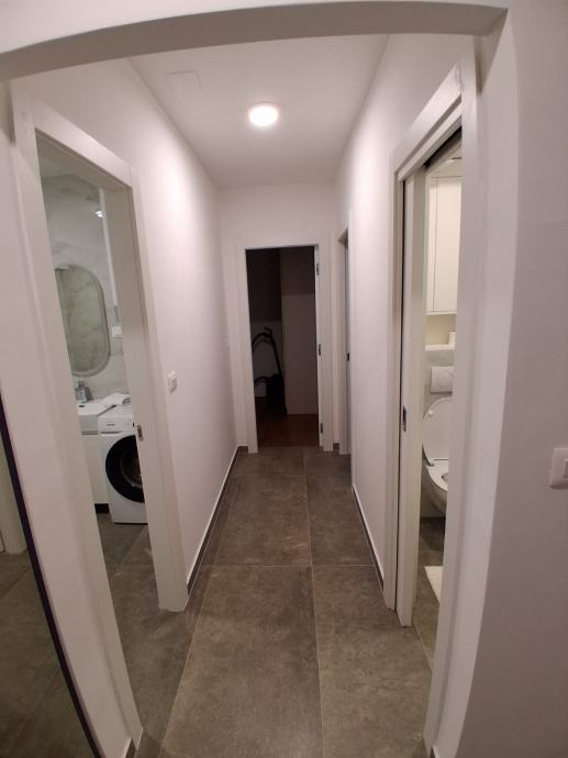Strožanac, stan, 70 m2, novogradnja, prvo useljenje, namješten top, dva parking mjesta, 200 metara od skole, mora, crkve...