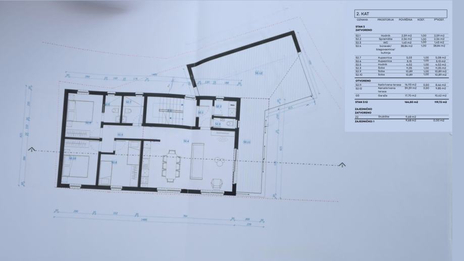 Terasa 1,2: 18,31 m2 (mogućnost dodavanja još jedne terase (20 m2) na krov koji ima priključak za jacuzzi i sl. te ima stepenište za krov)