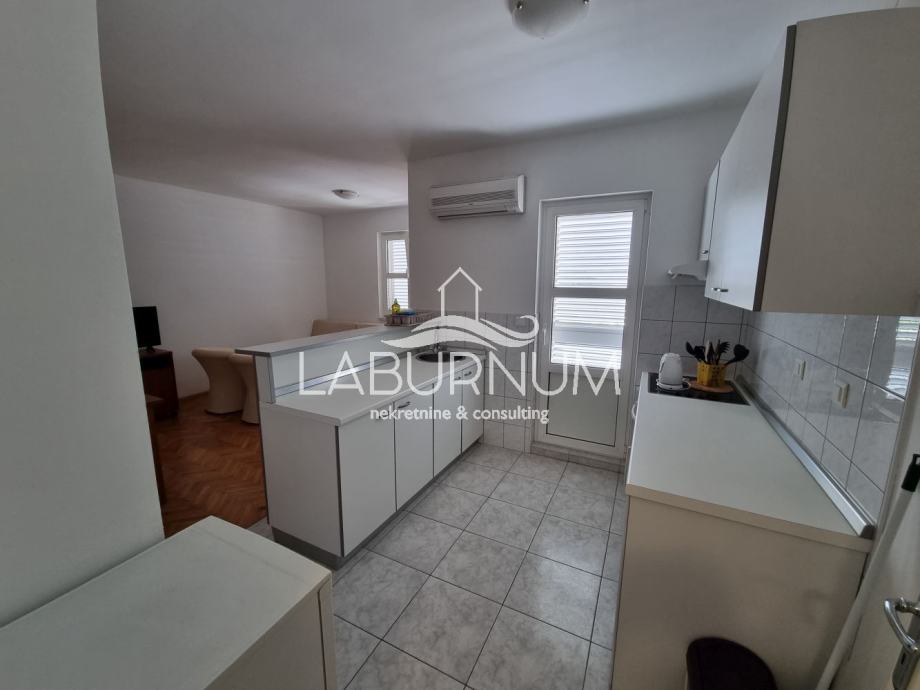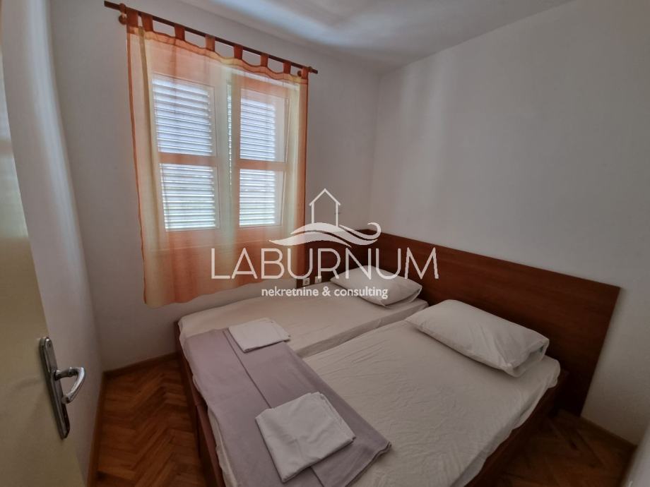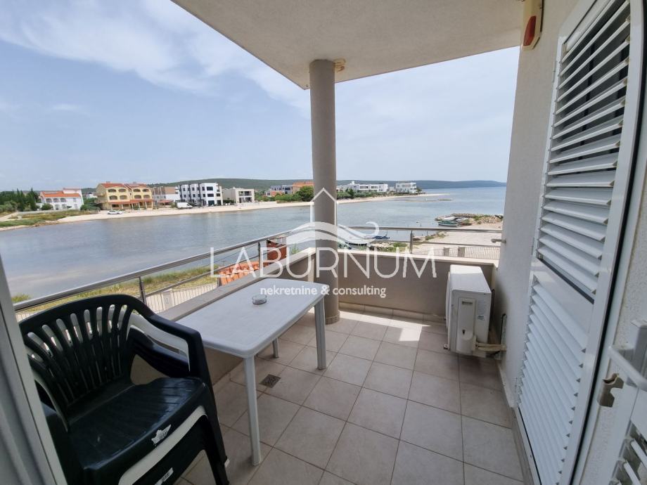Prodaje se apartman smješten na 2. katu stambene zgrade, 1. red uz more, 20 m udaljen od uređene plaže, kompletno namješten, sa dvije spavaće sobe, kupatilom, kuhinjom i dnevnim boravkom, balkonom, spremištem i 2 parkirna mjesta. Kompletna dokumentacija uredna ( vlasništvo, građevinska i uporabna dozvola).