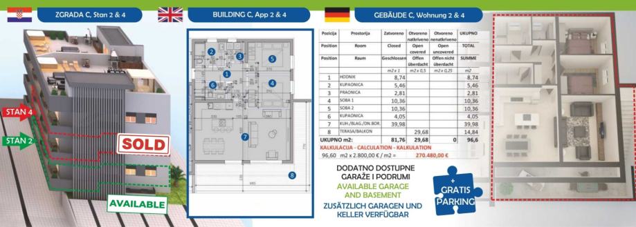 Investitor nudi mogućnost kupnje garaže i/ili spremišta.