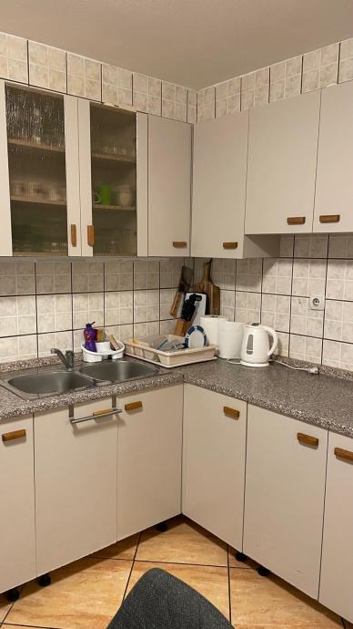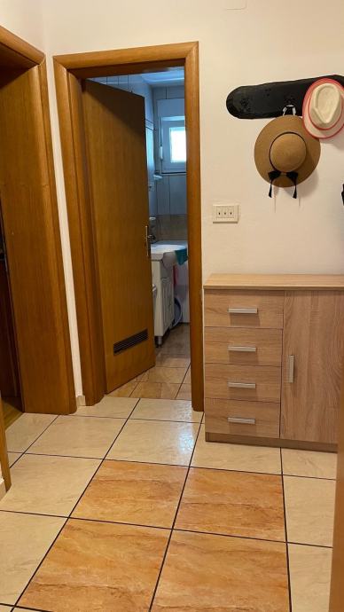Zgrada sa stanom se nalazi u mirnoj ulici, a od centra mjesta, mora i lijepo uređene plaže je udaljena 600 m i to direktno ulicom koja prolazi ispod Jadranske ceste tako da nema opasnosti ni čekanja za njen prelazak.