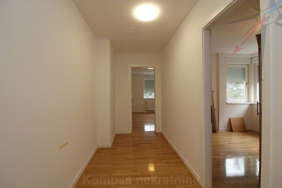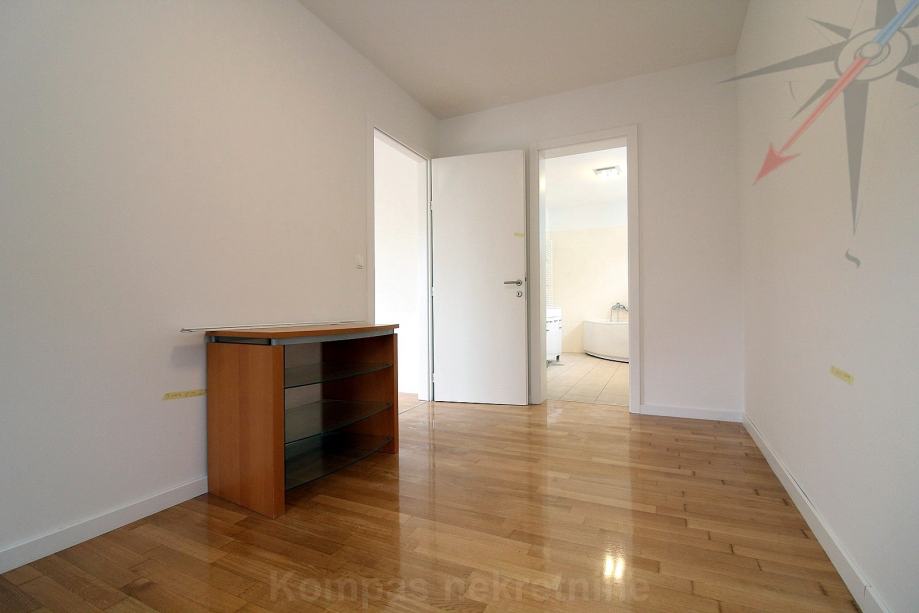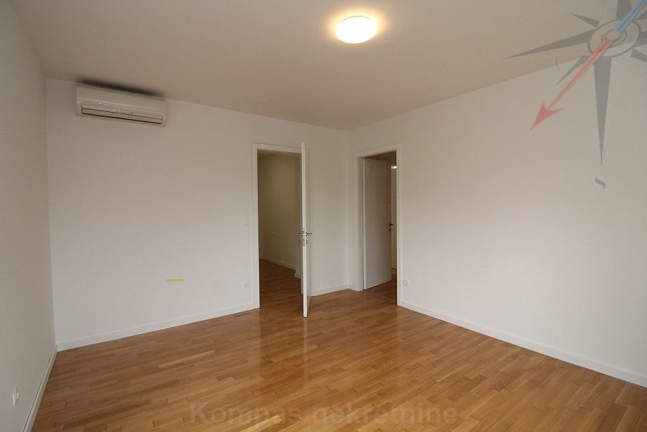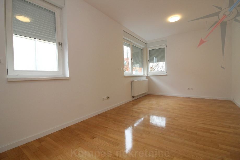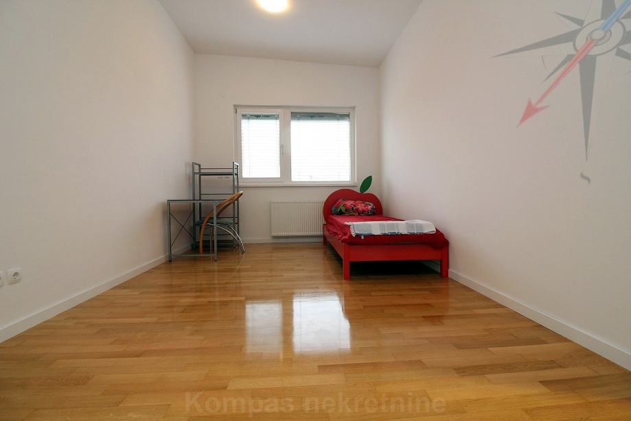 Stan ima video portafon na svakoj etaži, protuprovalna vrata, mogućnost optičkog interneta, šest klima uređaja, plinsko centralno grijanje, nove radijatore, nove rolete na struju, CO detektore, pripremu za alarm. Zidovi su ofarbani, parket je polakiran. Kuhinja i kućanski aparati su novi i nekorišteni. Prema dogovoru, može biti potpuno namještena. Pričuva je 150 eura i uključuje održavanje okućnice.