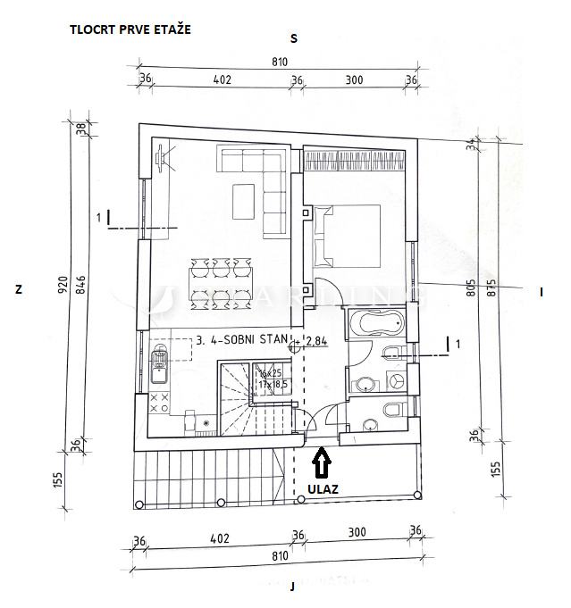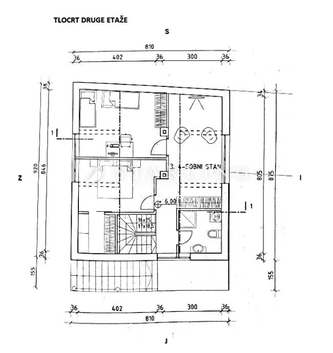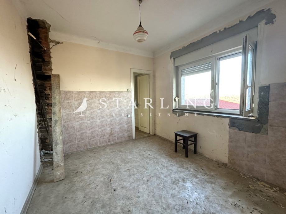 Prodaje se stan neto površine 57 m2 na prvom katu kuće zajedno s tavanskim prostorom ukupne neto površine 62 m2.