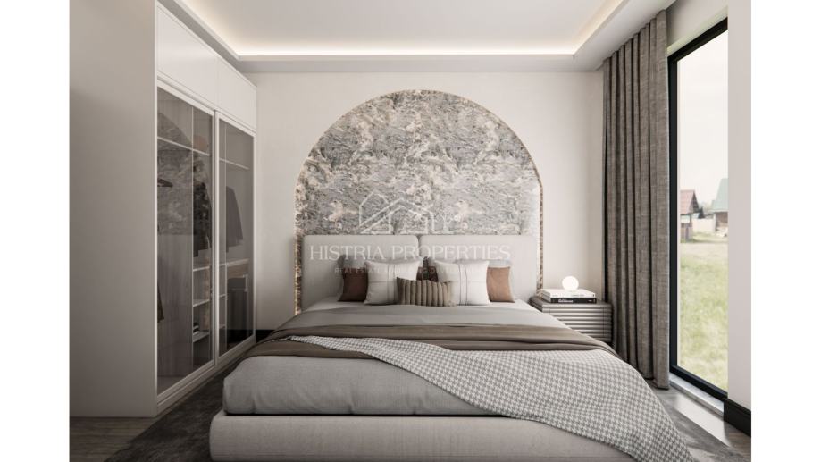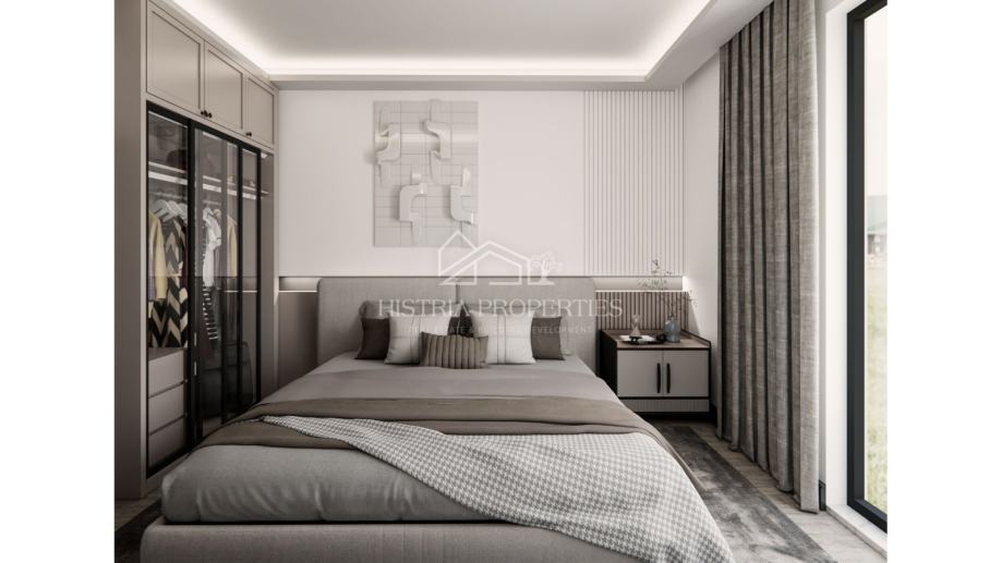 Stan se sastoji od dnevnog boravka otvorenog tipa na koji se nadovezuje kuhinja i blagovaona sa puno prirodne svjetlosti povezani sa osunčanom terasom, 3 spavaće sobe, kupaonica i zasebni toalet.
