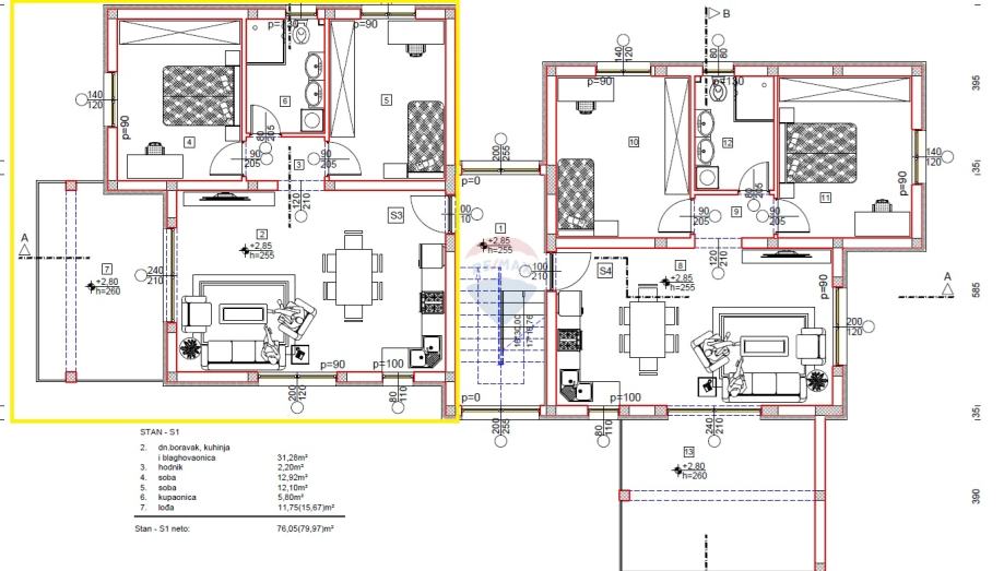 S1 – prizemlje, 76 m² – 281.200 €
