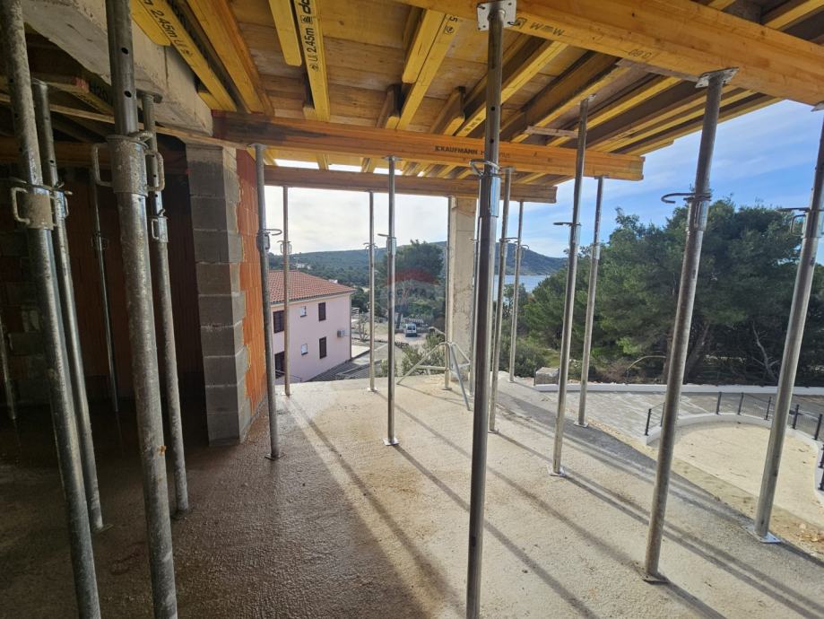 Stan zatvorene površine 64 m2 sastoji se od hodnika (2,20 m2), prostrane kuhinje spojene s blagavaonicom i dnevnim boravkom (31,28 m2), kupanice/wc-a (5,80 m2) te dvije spavaće sobe (12,92 i 12,10 m2). Iz dnevnog boravka se izlazi na prostranu loggiu površine 15,67 m2 s koje se pruža pogled na stari dio Primoštena.