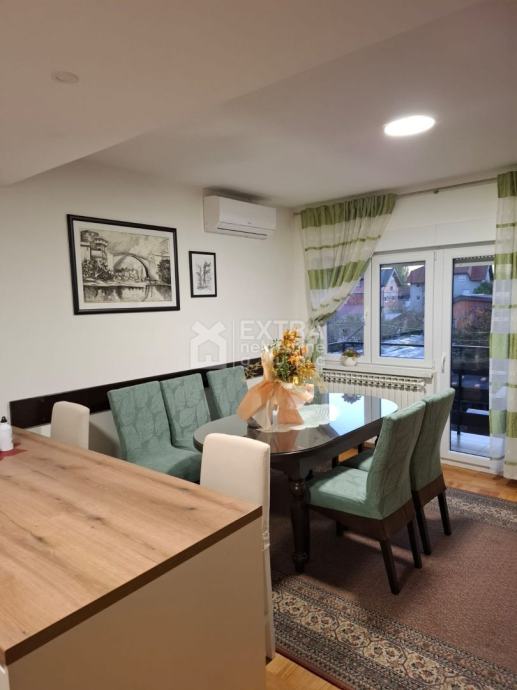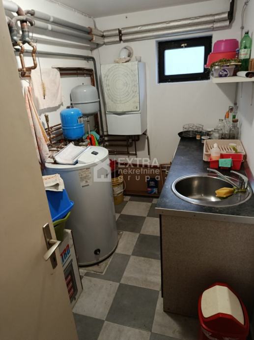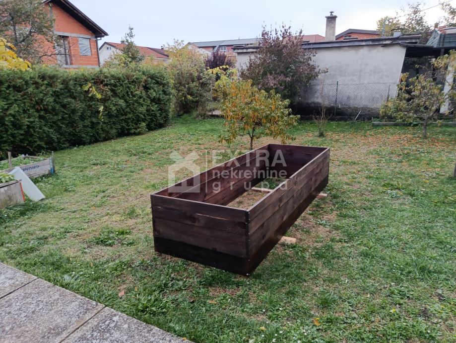 spremišta od kojeg je jedno pretvoreno u slatku konobu i kotlovnice,svekupne površine 46,53 m2, u tlocrtu podrumske etaže označeno rozo ,te garaže cca 20m2 i vanjskog parkirnog mjesta.Stan i sve dodatne prostorije se prodaju kompletno namještene,važno je istaknuti i zajednički vrt površine cca 150m2.Vrhunska lokacija nekretnine na 5min vožnje od zračne luke ,na par minuta hoda od svih potrebnih sadržaja i centra Velike Gorice.