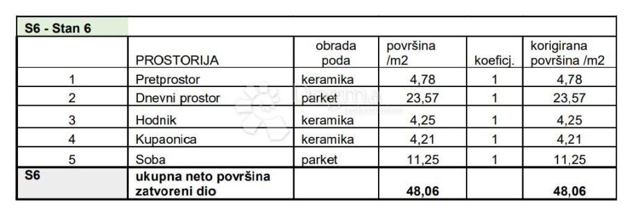 Stan se sastoji od od hodnika, predprostor, dnevnog boravka s blagavaonicom, 1 spavaće sobe te kupaonice.