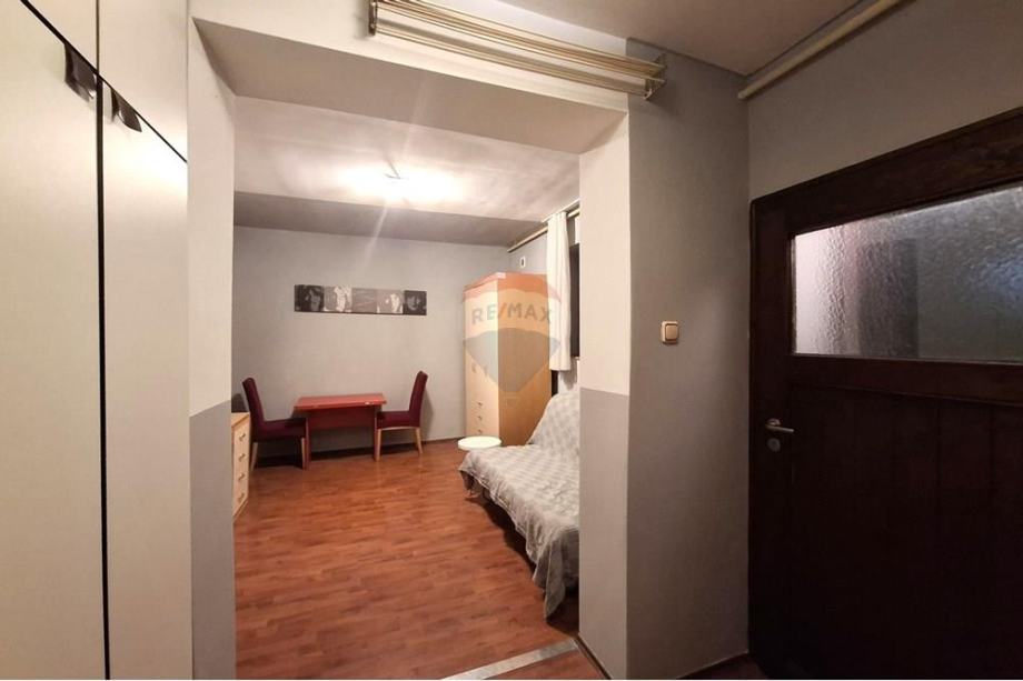 Stambeni dio sastoji se od jedne sobe, kuhinje i kupaonice s WC-om. Raspored je jednostavan i funkcionalan, a prostor je prikladan za osobu koja traži manji stan u dobro povezanoj gradskoj četvrti. Podovi su obloženi parketom, a stan ima sve osnovne komunalne priključke (voda, struja).