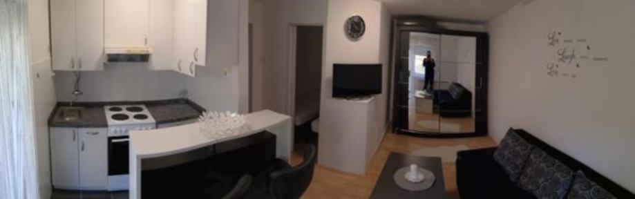 Stan se sastoji od dnevnog boravka,kuhinje,kupatila,balkona i male sobe gdje se nalaze dva kreveta koje je moguce sklopit u jedan.Stan je potpuno opremljen sa aparatima.Stan je na odlicnoj lokaciji pored zgrade se nalazi autobusna stanica,200m od stana je tramvajska stanica.Stan je useljiv odma.Za sve informacije nazvati na telefon.