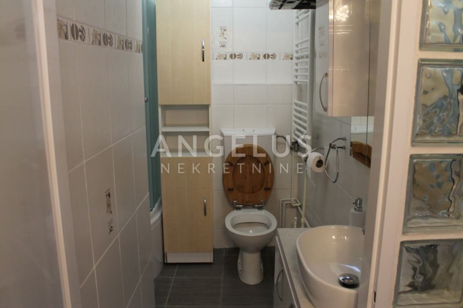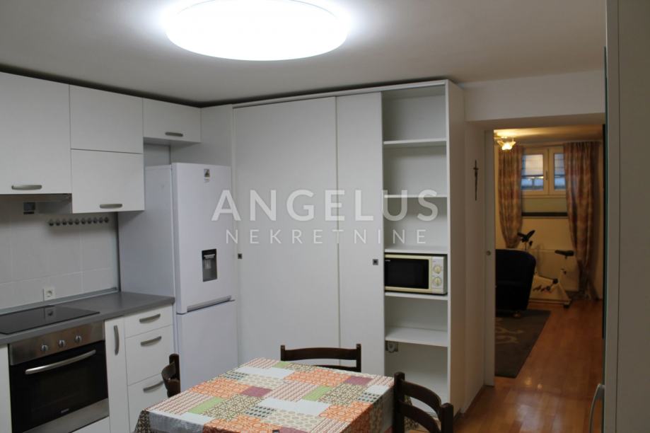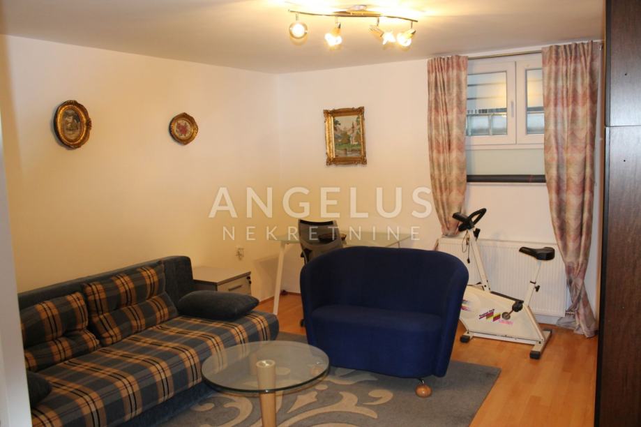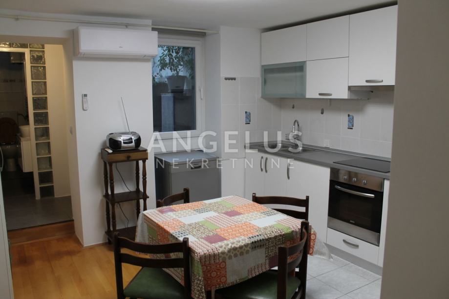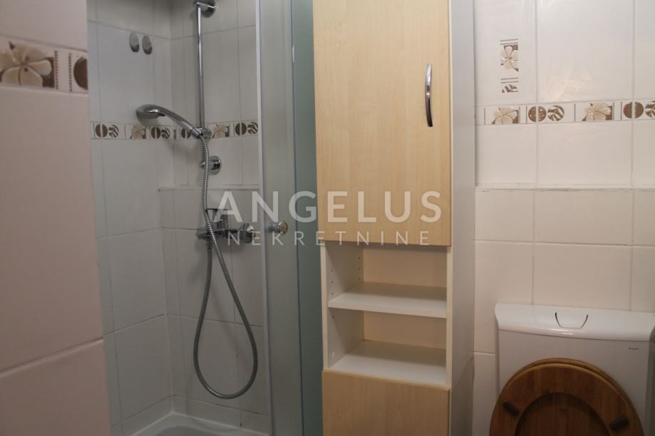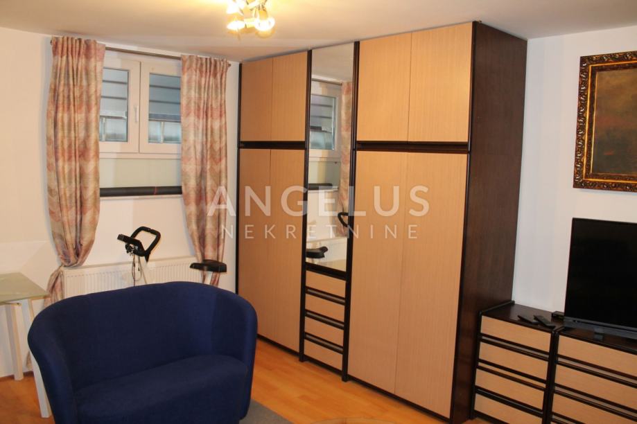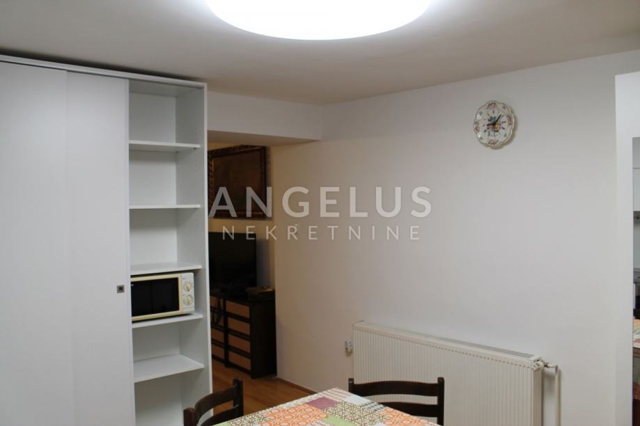 Stan se sastoji od ulaznog hodnika, kuhinje, kupaonice s tuš kabinom i jedne sobe od cca 19 m2 koja služi kao dnevni boravak i spavaća soba. Kuhinja je namještena perilicom posuđa, novom perilicom+sušilicom (all in one), pečnicom i mikrovalnom. U sobi je ormar, kutna garnitura na razvlačenje, TV i pisaći stol.