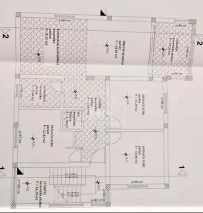 Nalazi se na 1. katu i sadrži: hodnik, dnevni boravak s blagovaonicom i kuhinjom, tri ogromne spavaće sobe (pov. 13.86 m2, 13.28 m2 i 12.42 m2), kupaonicu, WC i zatvorenu loggia-u orijentiranu na JUG.