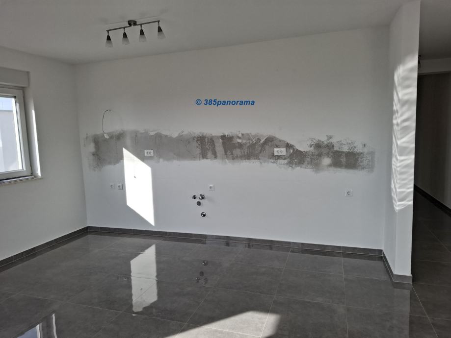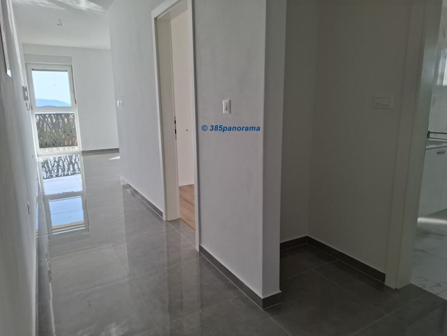 Stan se nalazi na zadnjem katu stambene zgrade, prema jugozapadu. Sastoji se od dvije spavaće sobe, hodnika s nišom, kupaonice s WC-om i svijetlog dnevnog boravka s otvorenom kuhinjom/blagovaonicom i pristupom natkrivenom balkonu od cca. 10 m2, s kojeg se pruža panoramski pogled od gotovo 180°. Uključeno je veliko vanjsko parkirno mjesto od 13,75 m2. Stan se prodaje nenamješten i pogodan je nekretnina za odmor, za cjelogodišnji boravak ili kao investicija.