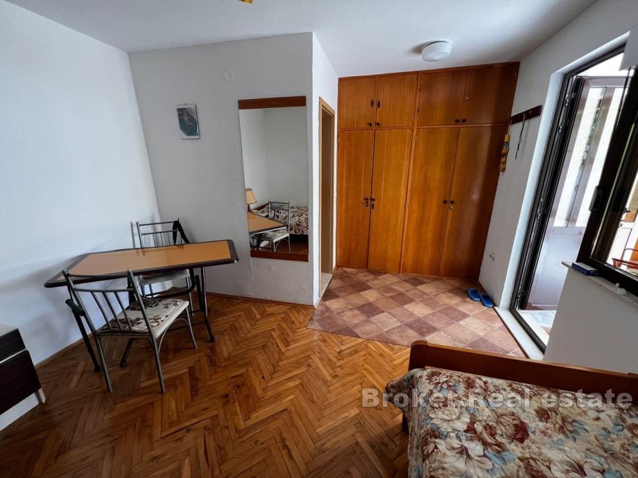 Iznajmljuje se jednosobni stan površine 44 m², smješten u prizemlju kuće u Okrugu Gornjem. Stan se sastoji od spavaće sobe, dnevnog boravka s blagovaonicom te male, funkcionalne kuhinje.