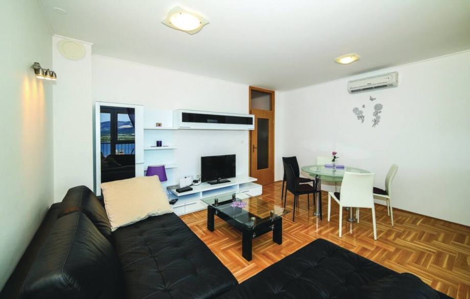Stan se nalazi u novijoj zgradi i sastoji se od dnevnog boravka s kuhinjom, spavaće sobe, kupaonice i balkona.
