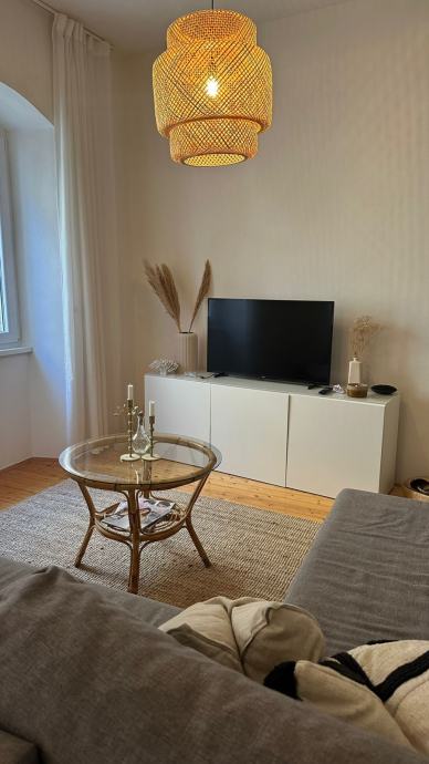 Iznajmljuje se potpuno namješten i ugodan stan površine 51 m², smješten u šarmantnoj staroj kamenoj zgradi u mirnom dijelu grada. Stan je svijetao, funkcionalan i uređen u modernom, toplom stilu.