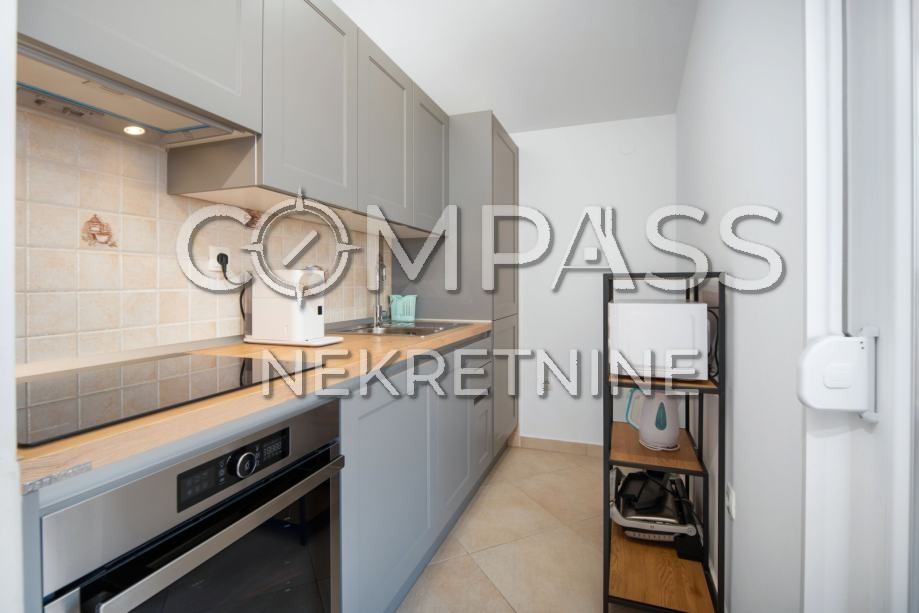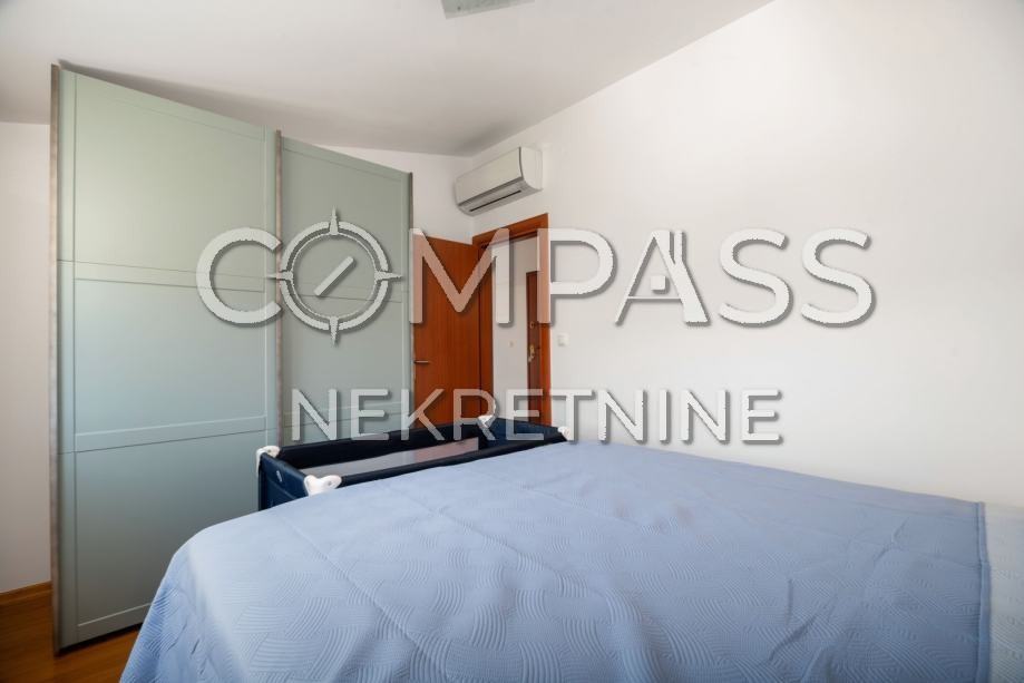 Plně vybavený byt k dlouhodobému pronájmu, vhodný pro pracovníky nebo dlouhodobé pobyty. 63 m², pro 4 osoby, kuchyně, koupelna, pračka, klimatizace, internet v ceně. Společný bazén a gril. 200 m od moře, klidná lokalita s parkováním. Kontakt: +385 91 638 1492, leana@compass.hr
