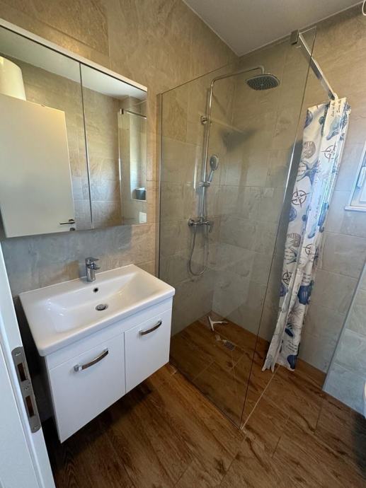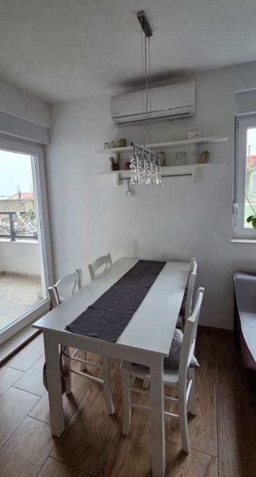 50m2; 2 spavace, kuhinja sa dnevnim, balkon/loggia, kupaona. Podno grijanje, klima, parkirno mjesto ispred zgrade.. djelomično opremljen ostalo se može opremiti po dogovoru..