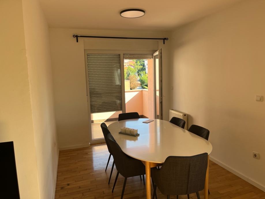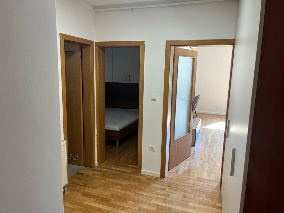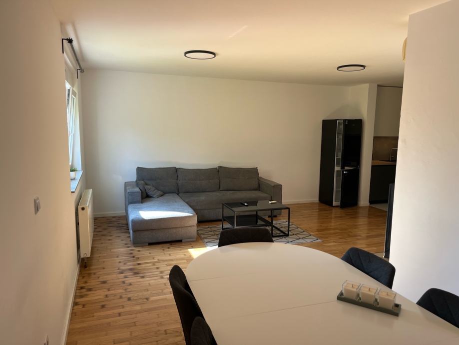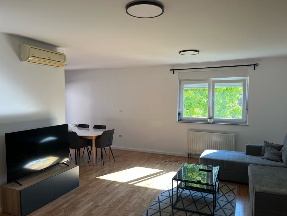 Novouređen stan u urednoj stambenoj zgradi na 2 katu kompletno namješten sa vlastitim parking mjestom pod rampom i spremištem u suterenu zgrade,bus pred zgradom a vlak preko puta zgrade
