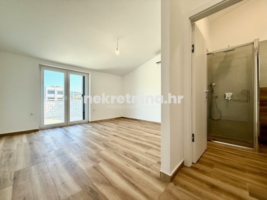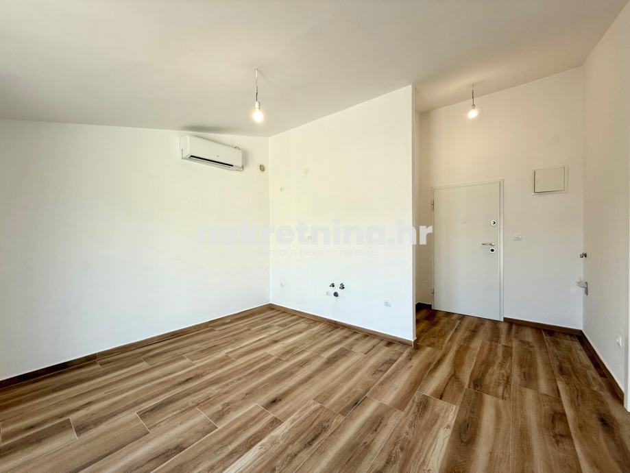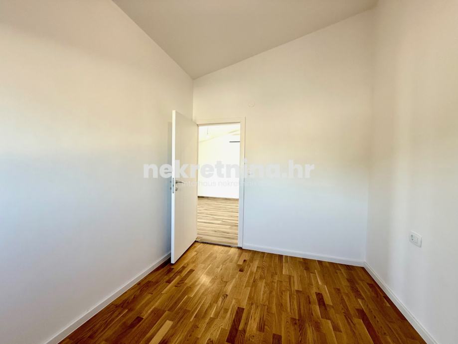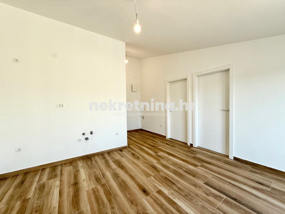 Stan se sastoji od .od dnevnog boravka s kuhinjo i blagovaonicom, dvije spavaće sobe, kupaonice i balkona.