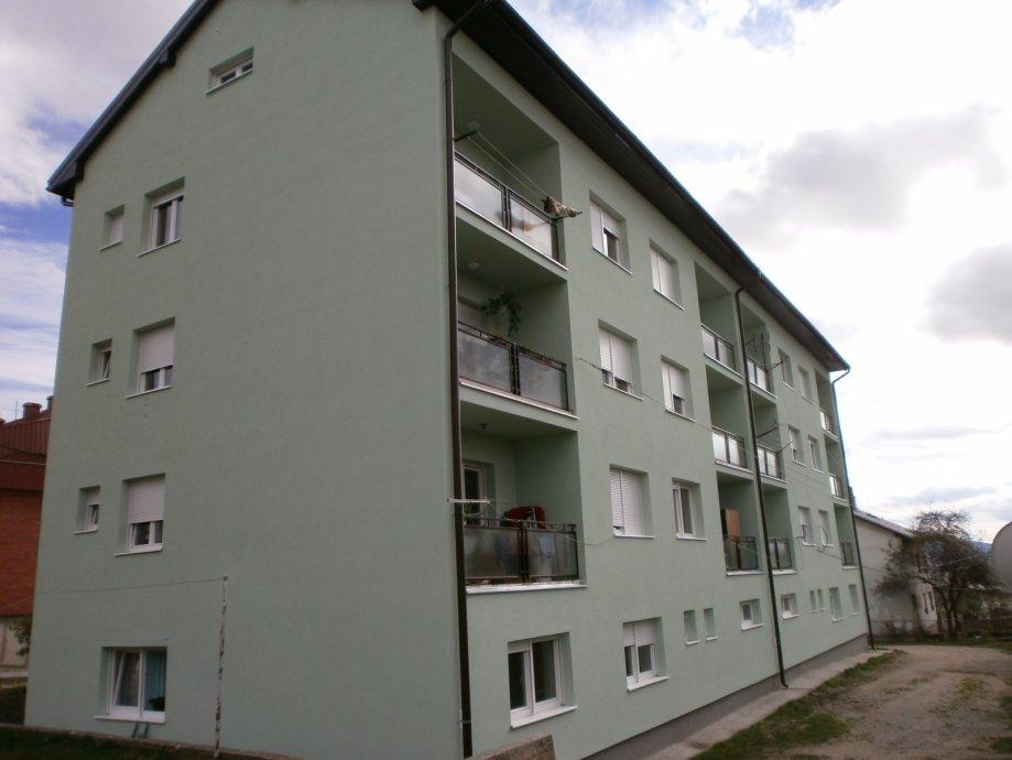 Sastoji se od dvije sobe, kuhinje, kupaonice i WC-a, predsoblja, 2 balkona i podruma površine 53.20 m"