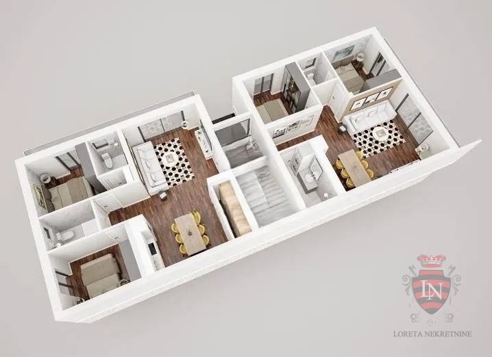 Stanovi su opremljeni prema najvišim standardima moderne gradnje i nude maksimalnu udobnost tijekom cijele godine: