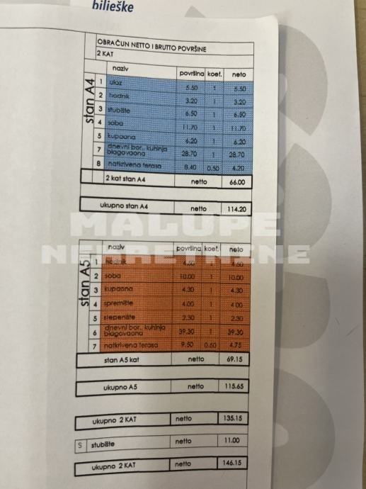 Dva stana sa galerijom na drugom katu veličine 115m2 i sastoje se od: ulaza i hodnika, 2 ili više spavaće sobe, dnevnog boravka, kuhinje i blagovaonice, spremišta i 2 natkrivene terase, sa dva parkirna mjesta za svaki stan.