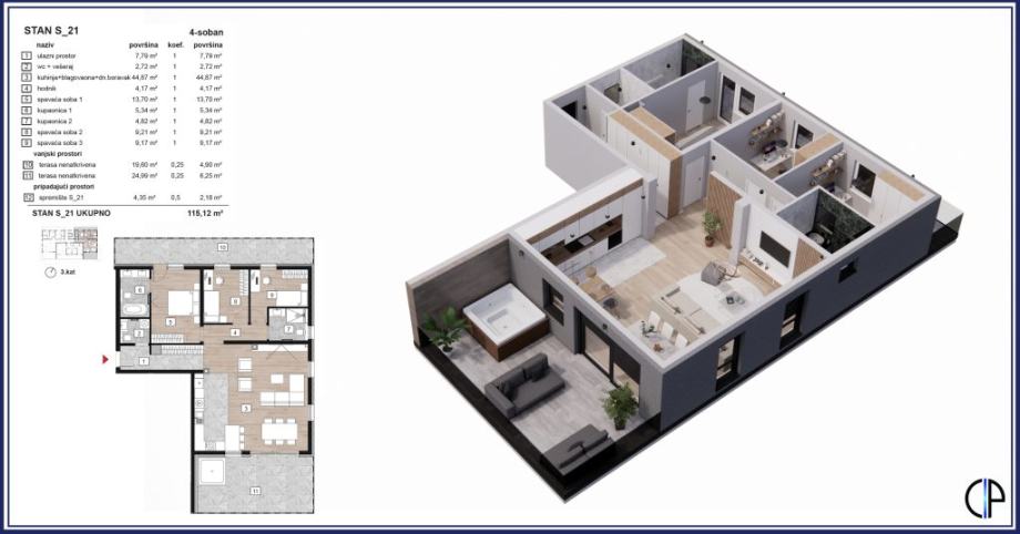 Stan S_21 nalazi se na 3. katu stambene zgrade Topola.