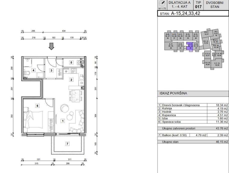 Stan se nalazi u novogradnji sa stanovima od 48 do 100m2.