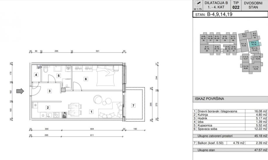 Stan se nalazi u novogradnji sa stanovima od 48 do 100m2.