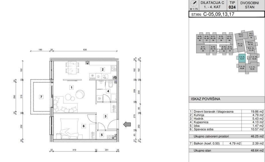 Stan se nalazi u novogradnji sa stanovima od 48 do 100m2.