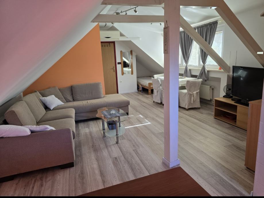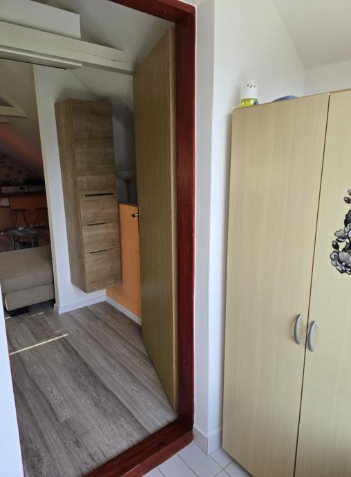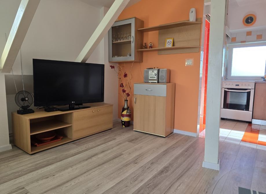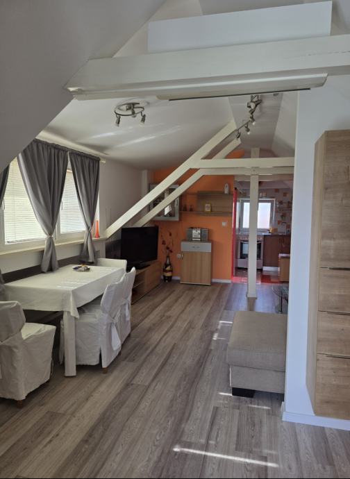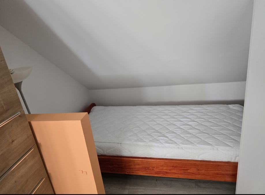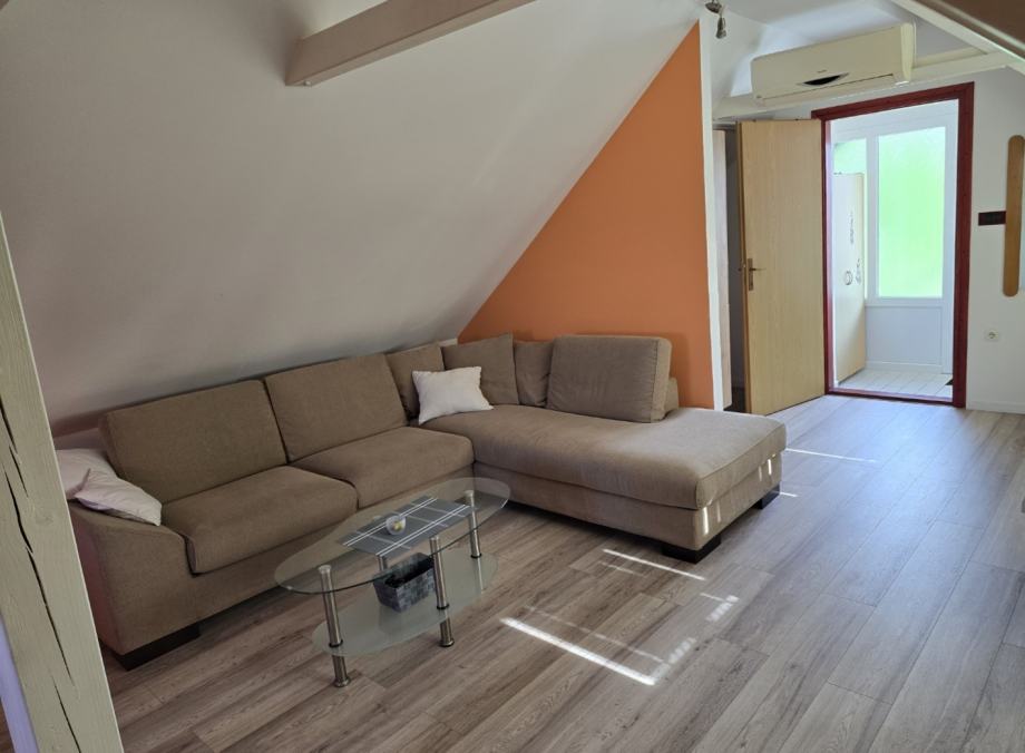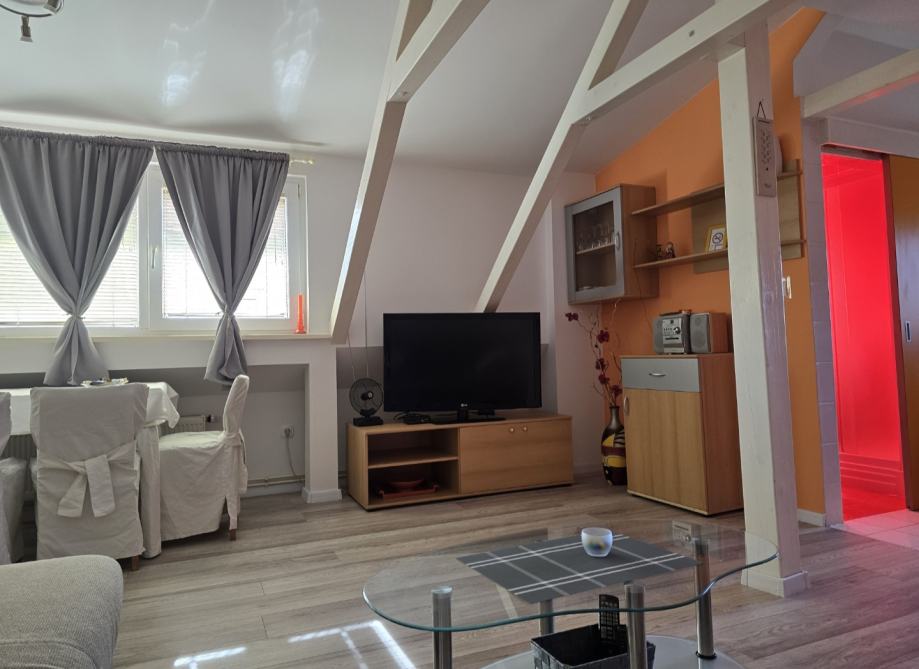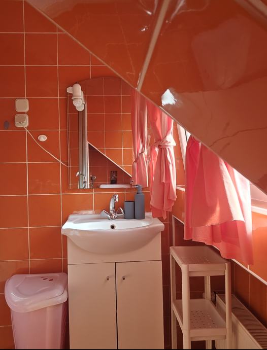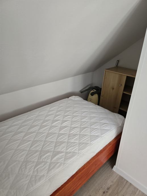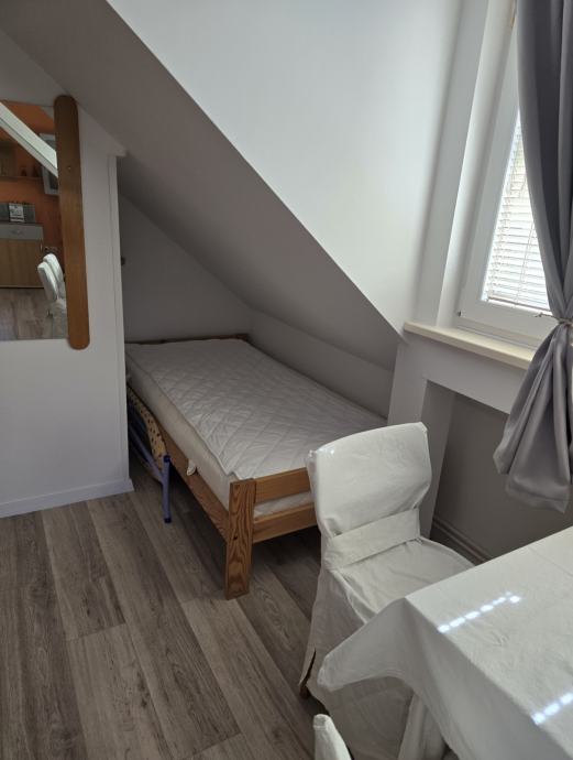 Iznajmljujem stan/garsonjeru (cc 50m2) zaposlenoj, urednoj osobi, nepušaču, ako želite podijeliti troškove mogu biti dvije osobe u stanu (dva zasebna kreveta). Nije pogodan za obitelj. Stan je u potkrovlju (sve je super izolirano - termo fasada kamena vuna 15cm, PVC stolarija, poseban ulaz što se vidi na slikama, sve je novo namješteno, grijanje je centralno, opremljen je lcd-tv-om, micro-linijom, klimom, adsl. Na prozorima su mreže protiv komaraca. U kuhinji je svo potrebno posuđe, mikrovalna, kuhalo za vodu i toster. Štednjak je sa keramičkom pločom, pećnica na struju ventilacijska, te nova perilica/sušilica rublja. Na krevetima su novi antialergijski madraci. Stan se nalazi cc 10-15 min. hoda od centra grada. Režije su zajedničke uz posebna kontrolna brojila, dakle koliko potrošite toliko plaćate. Građevina posjeduje energetski certifikat, te spada u B razred. Kućni ljubimci nisu dozvoljeni, također nije dozvoljeno pušenje u unutrašnjosti,. Mjesečni najam 400eu + režije ( cc 100 eu u zimskim mjesecima).Useljivo od 16. prosinca 2025.