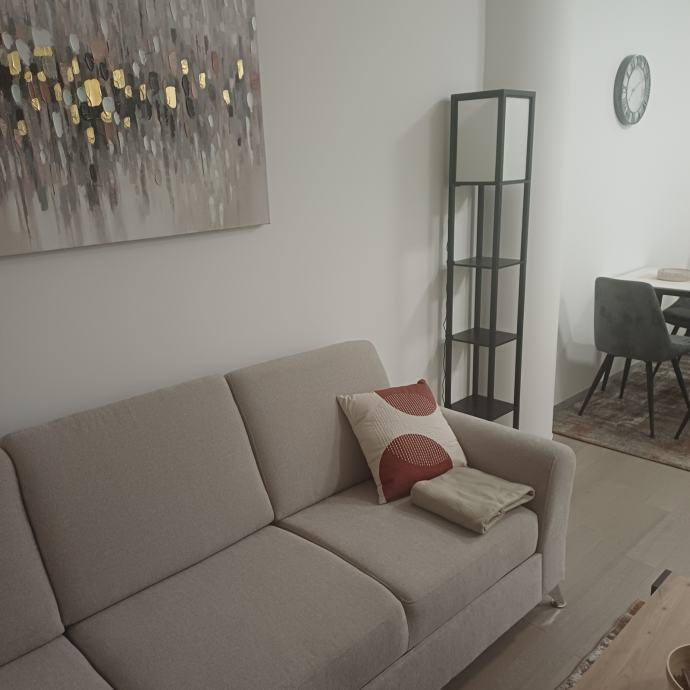 Iznajmljujem dvosobni stan u novogradnji a parkirnim mjestom u podzemnoj garazi. Stan u potpunosti opremljen.