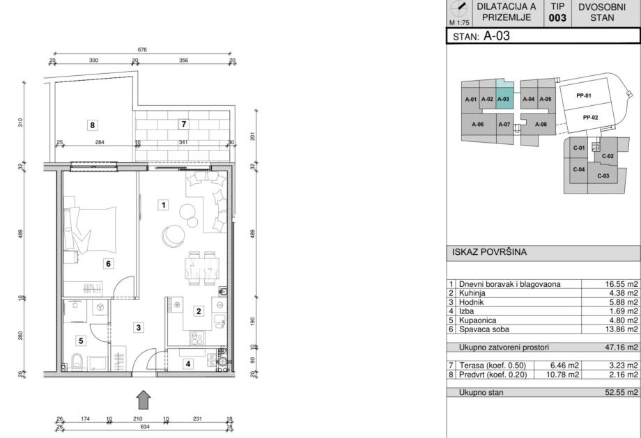 Stan se nalazi u novogradnji sa stanovima od 48 do 100m2.