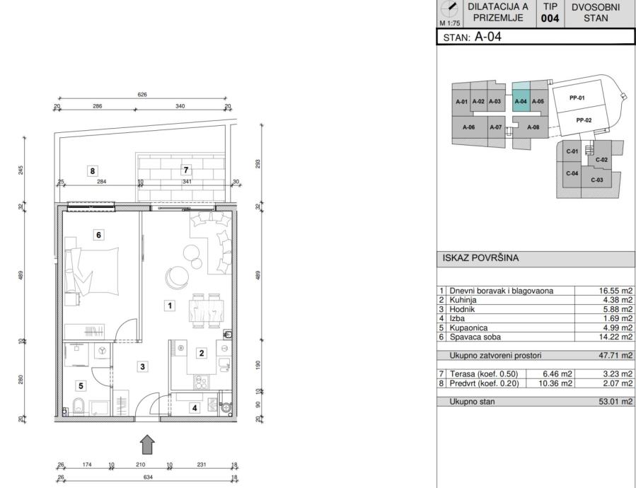 Stan se nalazi u novogradnji sa stanovima od 48 do 100m2.