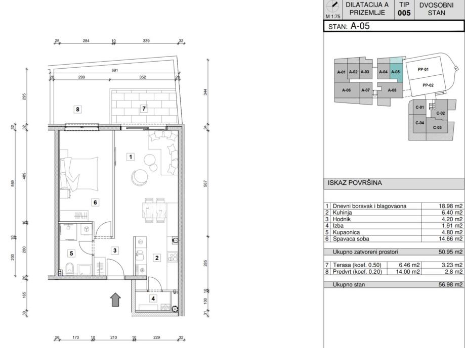 Stan se nalazi u novogradnji sa stanovima od 48 do 100m2.