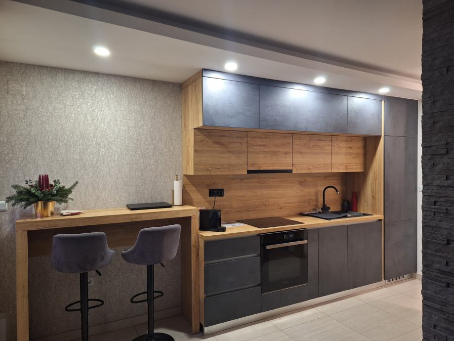 STAN JE POTPUNO UREĐEN SA KVALITETNOM KUHINJOM RAĐENOM PO MJERI TE KVALITETNIM APARATIMA, IZRAZITO MALE REŽIJE.