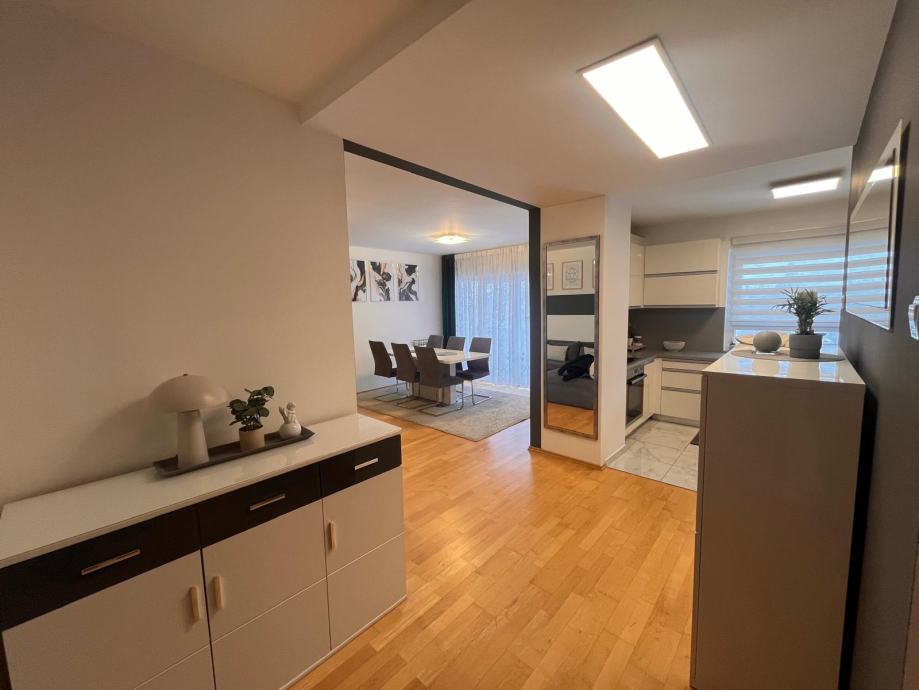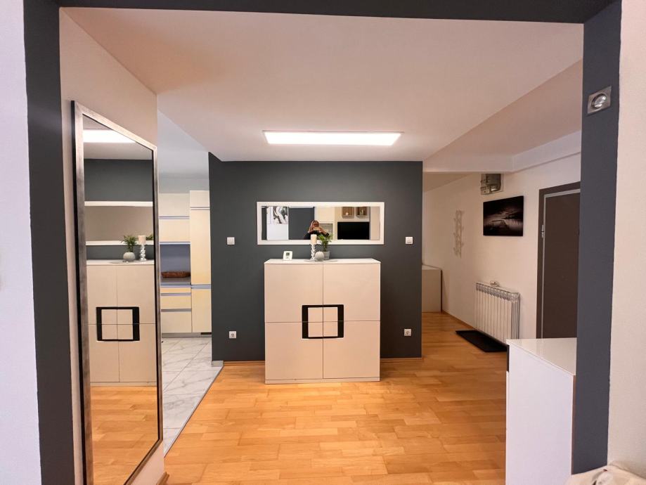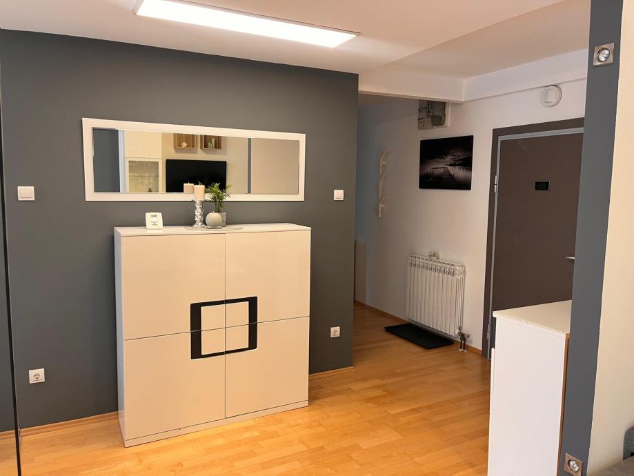 Iznajmljuje se uređen i održavan stan ukupne površine 76,45 m², smješten u širem centru grada Varaždina, na IV. katu stambene zgrade.