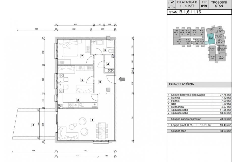 Stan se nalazi u novogradnji sa stanovima od 48 do 100m2.