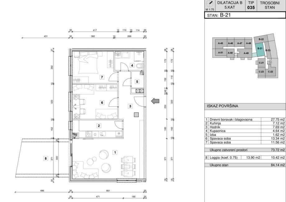 Stan se nalazi u novogradnji sa stanovima od 48 do 100m2.