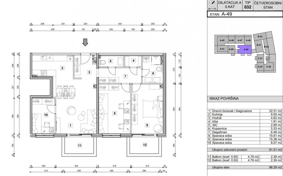 Stan se nalazi u novogradnji sa stanovima od 48 do 100m2.