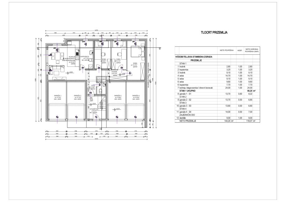 - netto površina stana 127,50m2, loggia/ balkon 17,28m2 sveukupno 144,78m2