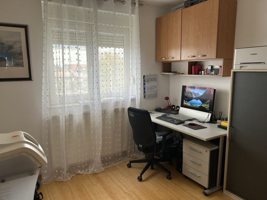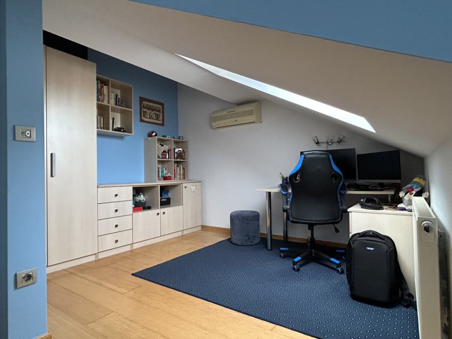 Na prvoj etaži nalazi se dnevni boravak, blagovanje, kuhinja, soba, kupaona, loggia i balkon. Na drugoj etaži su tri spavaće sobe i kupaona sa hidromasažnom kadom i podnim grijanjem. U cijeni je spremište i garaža, te ograđeni dio vrta . Stan je djelomično namješten (kuhinja, kupaone, ugradbeni ormari, integrirani aquarium), opremljen je optičkim internetom, alarmnim sustavom i sustavom „pametne kuće“. Stan je bez tereta, odmah useljiv.