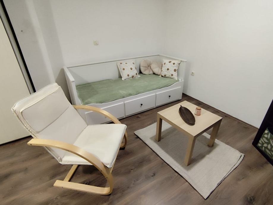 Garsonijera u prizemlju velike obiteljske kuće, poseban ulaz, direktno s ulice. Smart Tv, indukcijski štednjak s pećnicom, klima, wifi, netflix, grijanje posebno. Kompletno opremljen. Dugoročni najam, ugovor, namijenjeno za jednu osobu. Cijena 500 E, polog 250e, režije uključene u cijenu