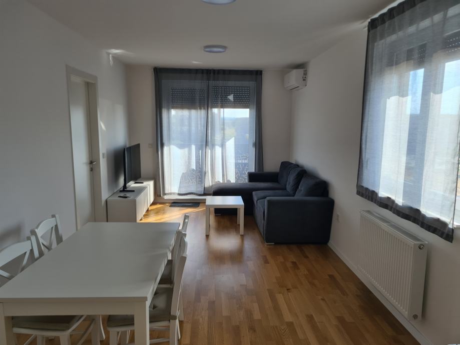 Iznajmljuje se na duži period potpuno namješten i opremljen stan na trećem katu novoizgrađene stambene zgrade sa liftom u Velikoj Gorici, Kolodvorska 64, kod Konzuma.