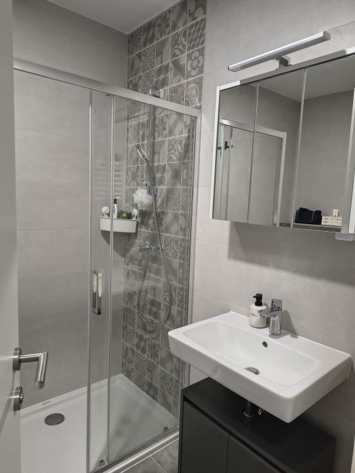 Cijeli stan je orijentiran na istok i prepun je dnevnog svjetla. Stan je opremljen klima uređajem, podnim grijanjem, kuhinjom sa svim uređajima i potpuno namješten. U garaži je jedno parkirno mjesto na korištenje koje pripada stanu. Mikrolokacija stana je odlična, pozicioniran je blizu svih bitnih sadržaja potrebnih za lagodan život.