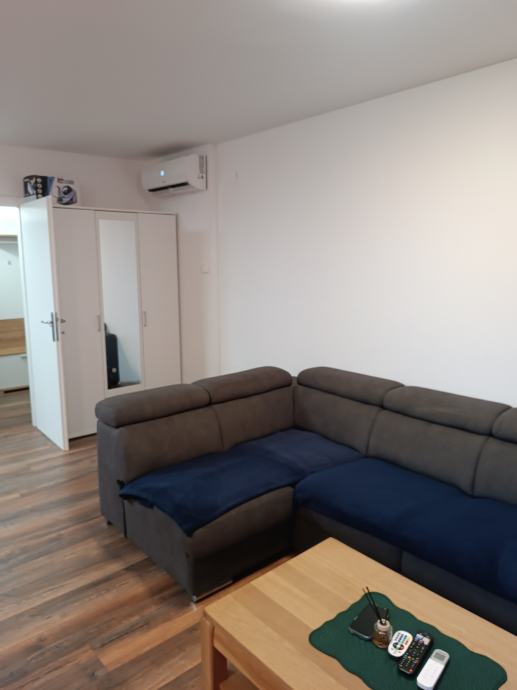 Stan u stambeno poslovnoj zgradi na duži najam. Potpuno namješten stan u centru u zgradi sa tri stambene jedinice, tako da je jako tiho. Stan se nalazi u dvorištu preko puta Adventa. Moguć dogovor oko pologa. Blizina svih sadržaja, jedno parkirno mjesto u dvorištu. Stan je opremljen sa suđem i posuđem, daska za peglanje i parna postaja, friteza na vrući zrak, toster, kuhalo za vodu, mikrovalna, usisavač, perlica za suđe, perilica za veš, sušilica za veš, TV, pećnica, ploča za kuhanje. Stambeno poslovna zgrada tako da su iza 16 sati samo stanari tri stana u zgradi. U samom centru, a mir i tišina jer je zgrada uvučena tako da nema buke od prometa. Plinski bojler se nalazi u stubištu što je velika prednost.