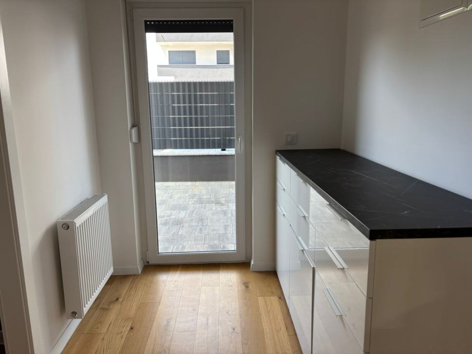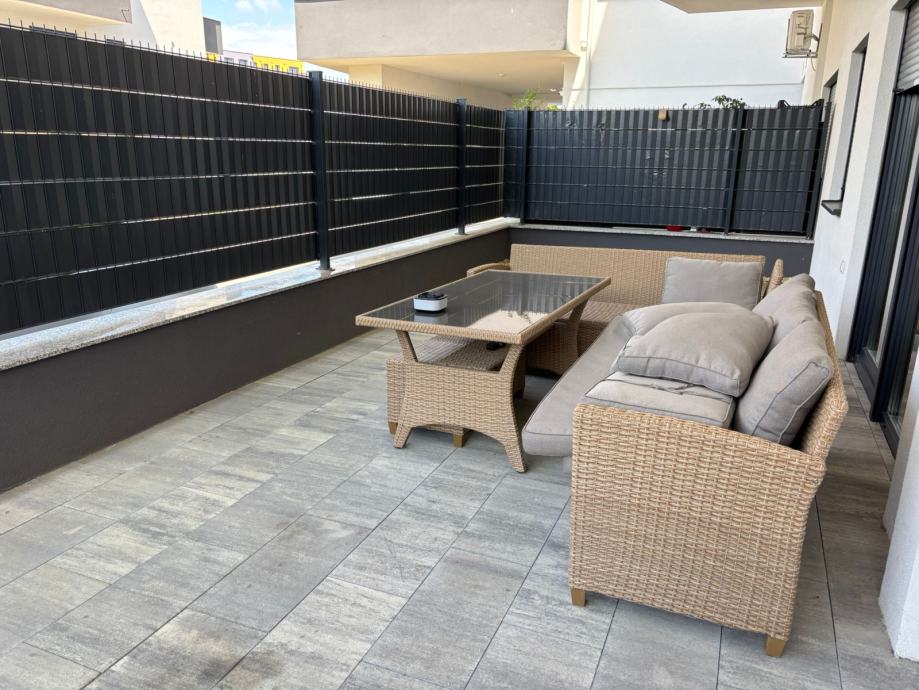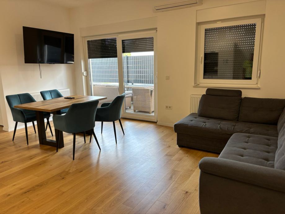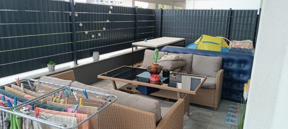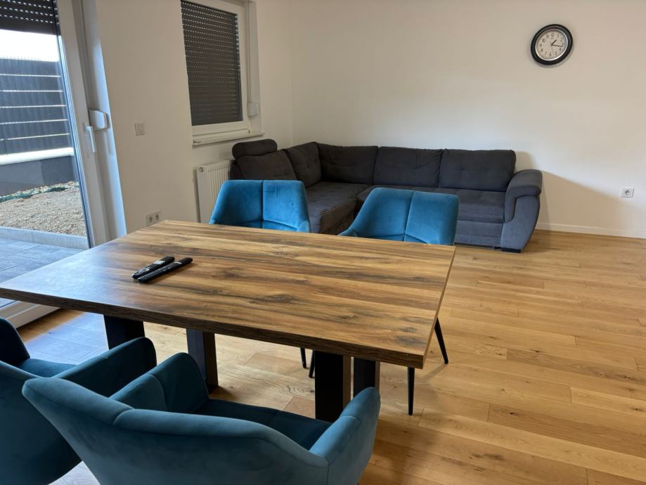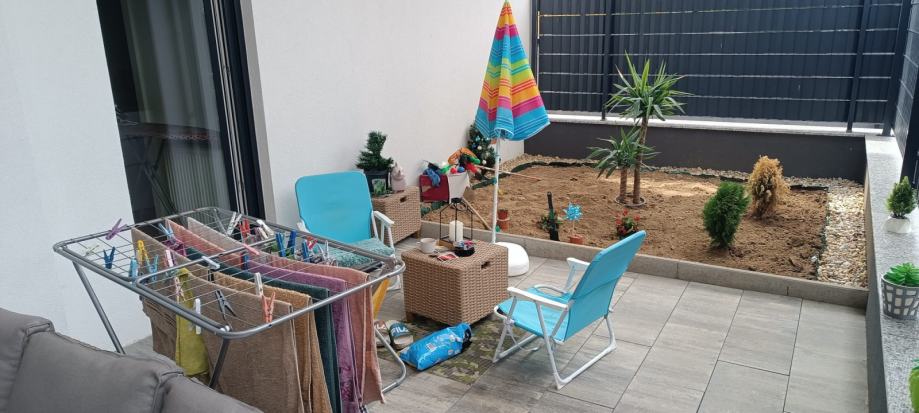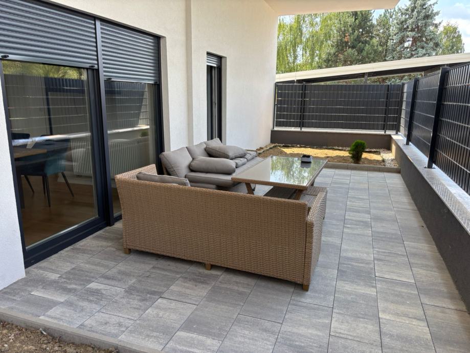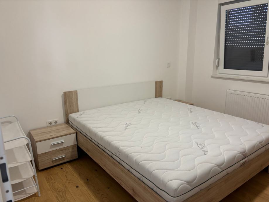 Iznajmljujem dvosoban stan u Velikoj Gorici. Stan ima 60m2 + terasa 36m2, nalazi se u prizemlju. Dvije spavace sobe + krevet na razvlacenje u dnevnoj sobi. Uz stan ide i garazno parkirno mjesto. Novogradnja, moderno opremljen, centar, 5 min hoda od glavnog trga. Cijena 1.100 eura + rezije.