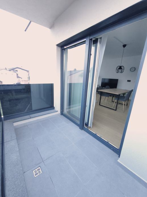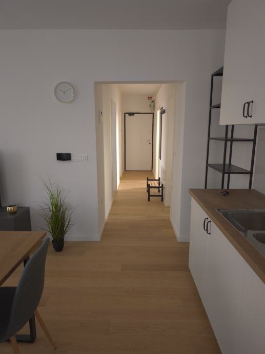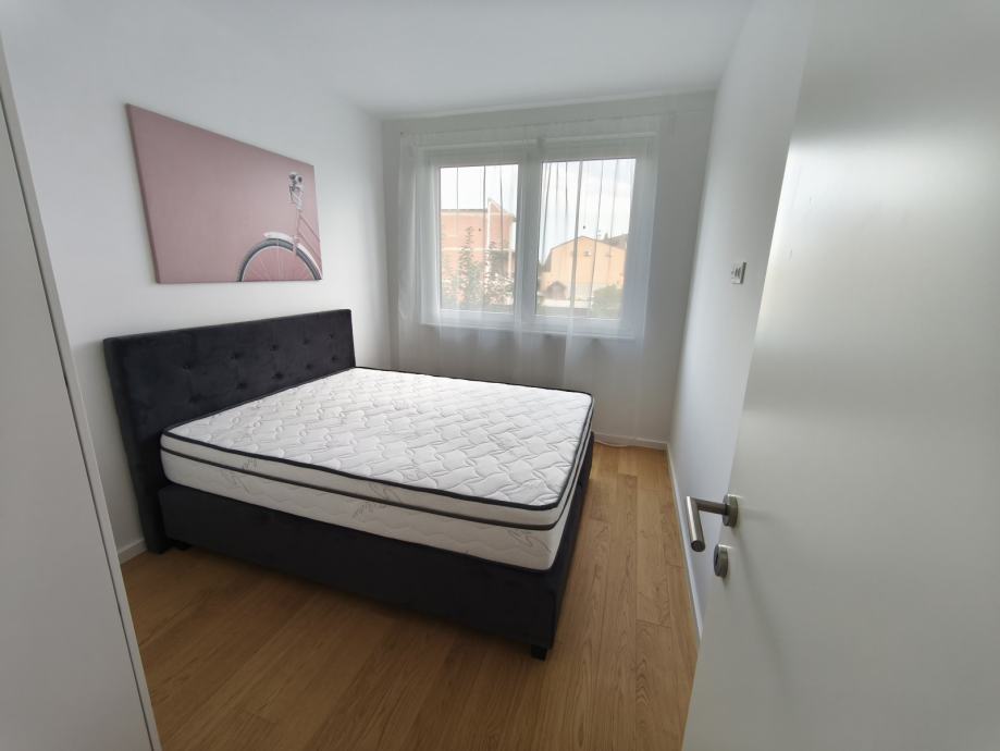Iznajmljuje se prostran i svijetao stan površine 68 m² na 2. katu stambene zgrade (zgrada ima 2 kata). Stan je moderno uređen, opremljen podnim grijanjem i roletama na elektro pogon. Uz stan dolazi i zatvorena privatna garaža sa dva parkirna mjesta (30 m²). Iznos pričuve je 30 EUR.