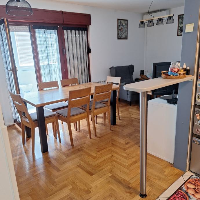 Specifikacije: tri sobe, prostran dnevni boravak u sklopu s blagavaonicom, kuhinja i kupaonica, zatvoreni balkon, spremište u podrumu